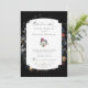 Ce design faire-part de mariage chic présente une vie morte florale hollandaise du 18ème siècle, incluant tulipes et fleurs sauvages blancs, rouges et or, sur un arrière - plan noir avec étiquette central personnalisé, graphiques floraux complémentaires et calligraphie coutume fluide et élégante. Le dos est doté d'une couronne florale optionnelle avec modèle monogramme.