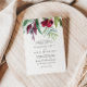 Cette calligraphie faire-part de mariage traditionnelle à fleurs tropicales est parfaite pour un mariage rustique. Ce design enchanteur peint à la main présente des fleurs violettes, des fleurs précieuses et un feuillage vert soigneusement arrangé en bouquets élégants.