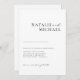 Vous recherchez une faire-part de mariage simple et moderne, élégante et abordable ? Découvrez cette belle invitation tout-en-un avec script de calligraphie minimaliste. L'avant et l'arrière de l'invitation sont conçus avec une touche fantaisiste, parfait pour un mariage romantique et peu cher. Le design noir et blanc rend cette invitation classique et chic, et vous pouvez inclure tous les détails de la réception et RSVP sur la même carte. Customisez cette invitation avec vos propres détails et jetez un oeil au reste de la collection pour voir tous les articles correspondants disponibles. Avec sa belle typographie et son design moderne, cette invitation tout-en-un est le choix idéal pour tout mariage minimaliste.