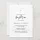 Cette calligraphie moderne et élégante invitation au baptême est parfaite pour un baptême ou baptême de bébé rustique. Le design sobre et élégant présente une typographie de script classique et sophistiquée en noir et blanc.