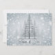 Calligraphie moderne Saison de joie Arbres d'hiver Invitation pour fête de Noël - Dans des tons bleu argenté atténués, un bouquet d'arbres en ligne - debout dans une scène de neige réalisée dans un style bokeh - Saison de joie écrit en calligraphie manuscrite - Personnalisez les informations de la fête au dos - Convient pour une utilisation en entreprise.