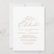 Cette délicate calligraphie dorée fêtons l'invitation est parfaite pour une fête de fiançailles moderne, mariage après la fête, la retraite, la remise des diplômes ou tout événement heureux. Le design minimaliste romantique présente une belle et élégante typographie de champagne jaune doré sur un arrière - plan blanc au look épuré et simple.
