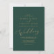 Cette délicate carte faire-part de mariage verte de calligraphie or est parfaite pour un mariage moderne. Le design minimaliste romantique présente une belle et élégante typographie de champagne jaune doré sur un arrière - plan vert émeraude à l'allure simple et épurée.