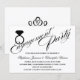 © Designs socialites. Notre belle écriture / calligraphie texte de la partie d'engagement, avec le texte noir sur l'arrière - plan blanc, et l'élément de conception de bague de diamant ajoutent une touche d'élégance simple à cette invitation de la partie d'engagement. Remplacez facilement notre texte modèle par vos informations spéciales. L'anneau de diamant peut être redimensionné, déplacé ou supprimé pour vous convenir.