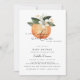 Cette invitation pour une baby shower "Un petit amour arrive" présente des fleurs d'orange en aquarelle blanche et un design neutre et doux.