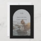 Faire-part de mariage moderne avec votre monogramme avec vos détails sur votre photo préférée à l'intérieur d'une arche sur un arrière - plan noir. Le modèle comprend une simple superposition pour permettre au texte de s'afficher sur l'image et peut être supprimé dans l'outil d'édition de conception. Ce design simple mais élégant, en noir et blanc classique, est parfait pour n'importe quel style de mariage.