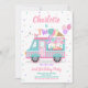 Jolie invitation d'anniversaire en style. Thème : Crème glacée - Voici The Scoop. Occasion : Enfant Fille 2e fête d'anniversaire. Style : Mignonne, Gaie, Amusante, Élégante. Couleurs : Rose, Violet, Turquoise, Blanc. Graphiques : Crème de glace, Camion Crème de glace, Balloons Pastel, Pois.