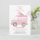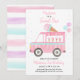 Cette invitation mignonne présente un camion de glaces à l'aquarelle peint à la main avec des glaces et des ballons de couleurs pastel.