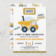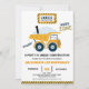 Zone de travail Camion en construction Invitation Anniversaire Tout âge en construction invitation d'anniversaire avec un grand camion à benne, des panneaux et un motif rayé jaune et noir. Cette invitation d'anniversaire en construction est idéale pour un premier anniversaire de garçon.