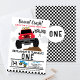 Red Blue Monster Truck 1st Birthday Invitation Un monstre mignon camion sur le thème de l'invitation de premier anniversaire avec un camion monstre rouge et bleu, drapeaux de course, quelques saletés et nuages. Cette invitation de camionnette de premier anniversaire de garçon multicolore est idéale pour une fête d'anniversaire de camion monstre, mais peut être utilisé pour n'importe quel âge.