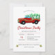 Invitations amusantes de vacances avec un camion rouge couvert de lumières, transportant à la maison un arbre de Noël. Des accents creux et des mitaines festives motif sur le dos. Facile personnalisable pour une soirée de vacances élégante.