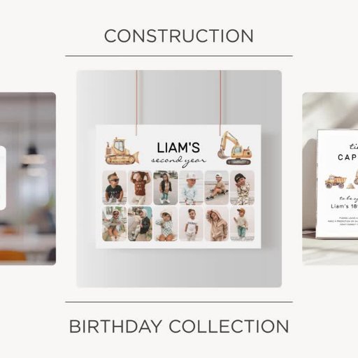 Arrêtez la circulation et fermez la route — il est temps de célébrer votre petit constructeur! Cette invitation à l'anniversaire de construction moderne comprend de charmants camions aquarelles aux couleurs douces et feutrées et un agencement épuré et minimaliste.