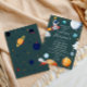 This adventurous birthday invitation was inspired by brave little space explorers. With Captain Mason soaring through watercolor galaxies, planets, stars, and clouds, it creates a fun cosmic theme perfect for kids who dream of exploring the solar system.