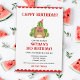 Faites sensation avec notre invitation anniversaire enfant Capybara Rouge Pastèque ! Ce design charmant présente un capybara rouge entouré de pastèque juteuse, créant un thème ludique et rafraîchissant parfait pour une célébration d'anniversaire remplie de plaisir. La palette de couleurs rouge vif et l'illustration fantaisiste capturent l'esprit joyeux de l'enfance, préparant le terrain pour une fête inoubliable que les enfants adoreront.