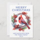 Cardinal Wreath pour la carte de Noël en bleu pour un accueil festif de vacances à la famille et les amis.