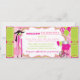 Marcheurs sur pilotis, bonbons en coton et carte d'anniversaire pour le carnaval en ballons avec encart en rose, rose chaud, blanc et kiwi vert avec billets de tombola à côté. Il suffit de perforer les côtés pour une déchirure facile !