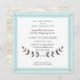 Suite d'invitation en forme de carré pour des baby showers de ferme modernes et simples et minimalistes. Aquarellée de bleu ciel doux arrière - plan et de feuilles de laurier gris mitraillé sur toile, cette conception simple est parfaite pour la douche d'un couple rustique urbain ! Mélanger et assortir des produits qui sont disponibles pour la fête et la crèche pour bébé garçon. Copyright Audrey Jeanne Roberts.