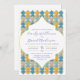 Bleu marocain moderne, carrelage jaune et doré, art marocain faire-part de mariage personnalisée. Ce produit peut être facilement personnalisé. Si vous avez besoin d'aide pour la personnalisation du produit ou si vous avez besoin de produits correspondants, veuillez me contacter via Zazzle.