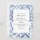 Ce faire-part de mariage s'inspire des carreaux bleus et blancs qui parsèment les villes méditerranéennes à travers l'Espagne, l'Italie et la Grèce.