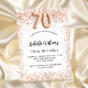 Pour un 70ème anniversaire élégant. Un arrière - plan blanc. Décoré d'or rose, de faux parties scintillant rose, brille. Personnalisez et ajoutez un nom, ainsi que les détails du parti. Le nom est écrit avec un script de style écrit à la main, numéro 70 avec des polices de style ballon.