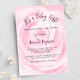 Gros plan d'une rose rose rose, fleur douce et aquarellée. Personnalisez et ajoutez le nom de la future maman et les détails de la fête.