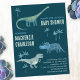 Petits dinosaures amusants, Tyrannosaurus Rex, Tricératops et Diplodocus pour accueillir un petit dans le monde. Baby shower neutre pour les femmes. Modifiez le nom et les détails pour personnaliser. Le dos est vide pour votre propre message. Art original de Nic Squirrell.