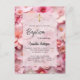 Invitation Carte Postale Baptême rose rousse fleurs bébé fille