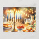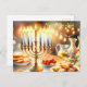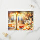 Illustration de l'aquarelle Hanoukka. Une table joliment aménagée pour une célébration festive, avec un menorah traditionnel aux bougies éclairées. Une lumière douce et chaleureuse, tandis que les décorations de vacances apportent une touche de gaieté. Lumières chaudes créant une atmosphère confortable et accueillante.