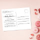 Une carte postale d'invitation pour la petite fille mignonne et joyeuse. L'avant présente "A Sweet Little Citrouille is On Her Way", écrit dans un mélange de typographie moderne et d'écriture élégante, et d'une aquarelle rose pastel d'un citrouille. Au contraire, "baby shower" est écrit dans le même script élégant et vous pouvez personnaliser le nom de la mère et les détails de la douche dans une typographie moderne minimale.