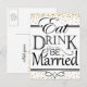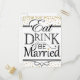 Conception d'invitation pour Manger Boire et être Marié avec confettis dorés, lettrage personnalisé