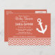 Invitation Carte Postale Corail foncé Chevron ; Ancre