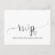 Cette simple demande de chant de calligraphie en feuille d'argent carte postale RSVP est parfaite pour un mariage élégant. Le design brillant argenté présente une typographie chic et un coeur métallique luxueux. Créez votre liste d'invités mariages et votre liste de chansons de piste de danse tout à la fois ! Cette carte postale de réponse mariage demande si les invités pourront assister à votre mariage, et aussi quelle chanson les amènera à danser. Remarque : Ce design ne présente pas de véritable feuille d'argent. C'est un graphisme de haute qualité fait pour ressembler à du papier argenté.