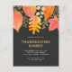 Cette carte postale d'invitation Thanksgiving moderne est décorée de feuilles de chute d'aquarelle aux couleurs automnales sur un arrière - plan sombre. Facile à personnaliser. Aquarelle originale © Michele Davies.