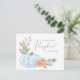 Carte postale d'invitation à la douche pour bébé mignonne avec "Un petit Citrouille sucré est en route" écrite dans un mélange de typographie moderne bleu clair et un script élégant avec un swash de coeur, et un bouquet d'aquarelle d'un citrouille bleu pastel, fleurs orange et verdure. Sur le dos, personnalisez facilement le nom de la mère dans un script bleu moderne et les détails de la douche dans une simple typographie gris-doux.