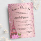 Une invitation moderne, élégante et glamour pour une douche nuptiale, à thème parisien. Un arrière - plan à l'allure métallique rose vif avec des arômes de coeur rose et la tour Eiffel avec quelques fleurs. Le nom est écrit avec un script de style moderne écrit à la main. Personnalisez et ajoutez un nom et des détails du parti.