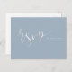 Script RSVP écrit à la main sur couleur éditable arrière - plan bleu poussiéreux, élégant et élégant, grand moderne simple et personnalisé carte postale RSVP mariage. Voir toutes les pièces correspondantes dans la collection.