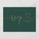 Un script de coeur or simple et élégant sur une carte RSVP arrière - plan émeraude. L'inverse vous donne vos détails et une demande amusante de chant invité. Conçu par Thisisnotme©