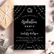 Invitation Carte Postale Fête de graduation des étoiles d'argent noir moder