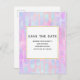 Enregistrez la carte postale de la date avec un motif arrière - plan abstrait. Les aquarelles rose violet et bleu composent ce design artistique qui présente des formes verticales rectangle sur un arrière - plan doux et marbré. Un carré superposé avec une fausse bordure en feuille d'or, votre texte personnalisé à l'intérieur.