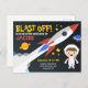 Éblouissez votre invité avec cet invitation de fête anniversaire de enfant coloré avec un adorable petit astronaute et une fusée décolorant avec des éléments spatiaux colorés. Ajoutez simplement les détails de votre événement sur ce modèle facile à utiliser pour en faire une invitation unique.