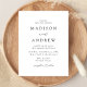 Carte postale minimaliste et moderne avec vos détails mariages en lettres noires avec accents de script de calligraphie. L'arrière - plan blanc peut être changé en une couleur de votre choix. Personnalisez le dos de la carte postale chic faire-part de mariage avec votre adresse de retour, le site Web du mariage, les images, etc. Conçu pour coordonner avec notre collection de mariages Modern Elegance.