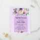 Arrière - plan violet, lavande aquarellé. Décoré de fleurs violettes et violettes aquarelles et d'une croix dorée. Personnalisez et ajoutez votre nom et vos coordonnées de réception.