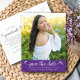 Assurez-vous que tous vos amis et parents pourront célébrer la remise des diplômes de votre fille! Envoyez cette carte postale "Save the Date", simple, moderne et personnalisée pour un événement à retenir. Un visuel amusant et ludique d'écriture manuscrite blanche et de coeurs mignons et ludiques, avec son nom, son année de classe et son école, superposent un groupe violet. Sur le devant, ajoutez la photo de votre choix et personnalisez le texte personnalisé avec le nom de votre élève, l’école et l’année de classe. Votre message personnalisé et votre adresse de retour ornent le dos. Invitations correspondants, cartes de remerciements, toppers casquettes, plaques et autres cadeaux de remise de diplômes sont également disponibles dans cette collection tendance et élégante. Garantie d'ajouter du plaisir élégant à son occasion spéciale! Il vous suffit de taper le nom de votre diplômée, l’année scolaire et la classe, la date, le message personnalisé, ajouter sa photo, et vous pouvez facilement personnaliser cette carte postale faire-part "Enregistrer la date". S'il vous plaît, envoyez-moi un message avec toute question ou demande.
