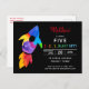 Rainbow Rocket Ship Exterspace Anniversaire Partie Black Postcard Invitation. Arc-en-ciel aquarelle navire de l'espace extérieur thème simple classique moderne fête d'anniversaire fournitures. www.SamAnnDesigns.com