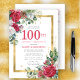 Invitation Carte Postale Red Rose Gold Holly 100e anniversaire