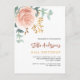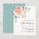 Un arrière - plan blanc chic. Décoré d'un grand or rose et rose vif floral, fleur rose et feuilles d'eucalyptus vert couleur eau, sprigs, verdure et un faux sprig d'or. Personnalisez et ajoutez votre nom et les détails de votre fête. Dos : vert sauge couleur arrière - plan.