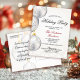 Carte postale d'invitation de fête de Noël en argent et baubles. Le texte peut être modifié en utilisant à droite le menu "Détails". Pour tout adapter à vos besoins, cliquez sur le bouton "Personnaliser" et vous pouvez modifier le style et la couleur du texte. D'autres couleurs sont disponibles. Veuillez me contacter si vous avez besoin d'aide, pour les articles correspondants ou si vous avez des souhaits spéciaux.