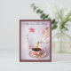 Une tasse de thé que l'on verse avec un rose dans un petit vase est une invitation à la carte postale pour une fête du thé l'après-midi. Customisez cette carte postale avec votre lieu et votre heure !