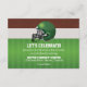 Carte d'insertion pour réception de Bar Mitzvah de football américain marron, vert et blanc. Cette carte de réception de Bar Mitzvah de football américain présente un fond en cuir marron grené qui ressemble au cuir d'un ballon de football, associé à une bande de cuir blanc grené et à un terrain de football vert qui ressemble à de l'herbe. Ce fond de football vert, marron et blanc est associé à une police de caractères de style sportif et à un casque de football vert et noir. Cette carte de réception de fête ou de célébration de Bar Mitzvah de football conviendrait parfaitement pour un Bar Mitzvah sur le thème de la NFL ou du Super Bowl. Cette carte d'insertion de réception de Bar Mitzvah sur le thème du football pourrait convenir pour n'importe quelle saison et est un excellent choix pour un garçon qui aime le football américain.
