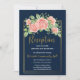 Invitation Carton d'invitation bleu marine à fleurs avec doru